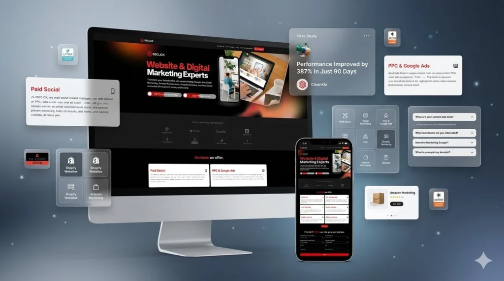 99CLICK – Custom Shopify Agency Website | Advanced Liquid Development